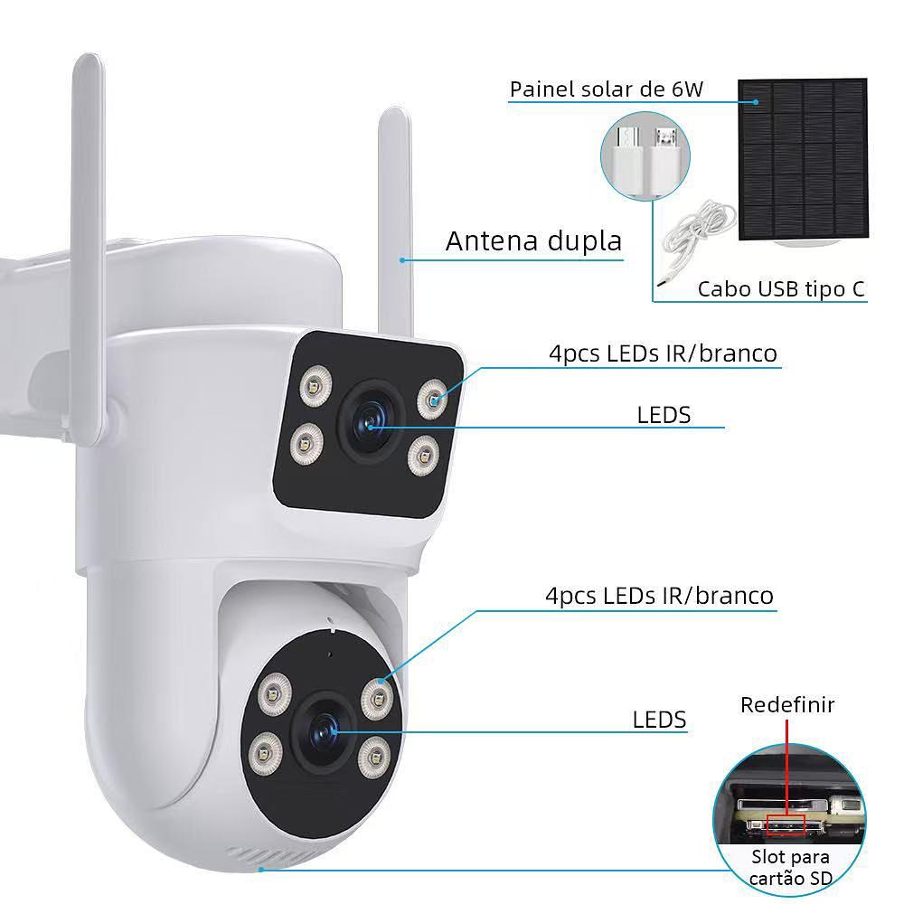 CAMERA INTELIGENTE 4G DUPLA LENTE COM ENERGIA SOLAR - Q10B