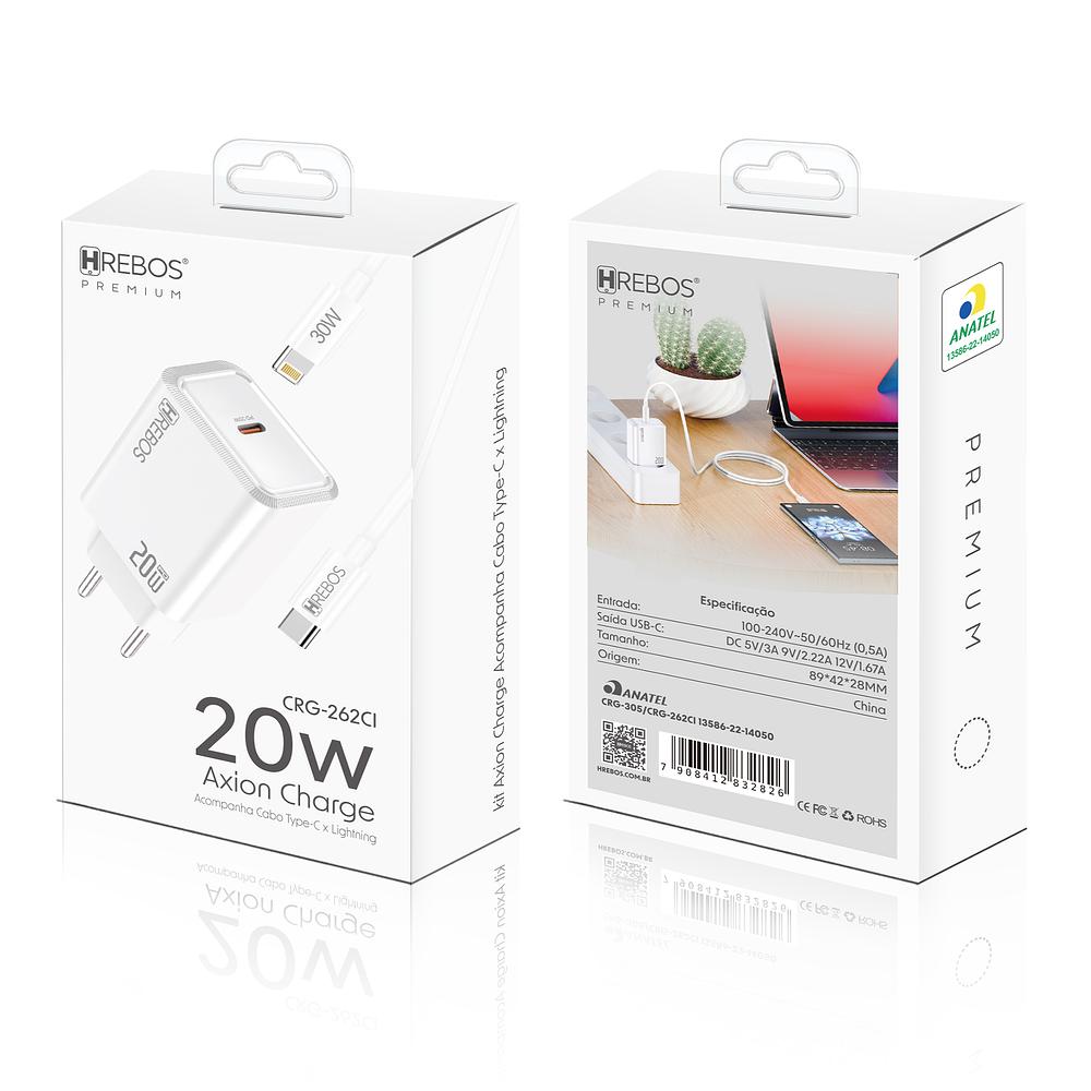 CARREGADOR AXION CHARGE + CABO LIGTHNING/TC 20W
