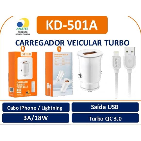 CARREGADOR VEICULAR KAIDI CARRO iOS - 501A