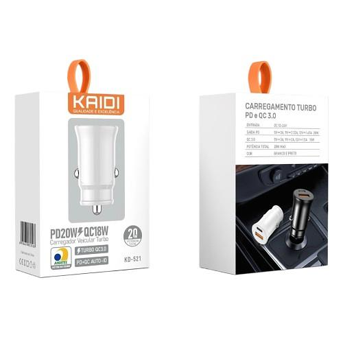KAIDI - FONTE/CARREGADOR VEICULAR USB A + USB C