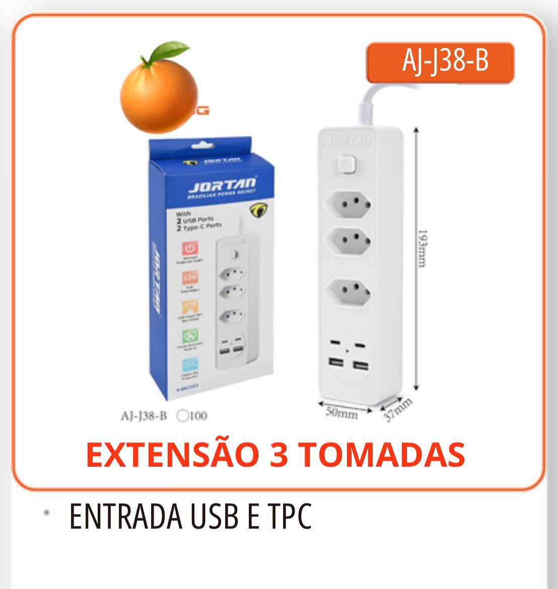 EXTENSÃO 3 TOMADAS ENTRADA USB/TC