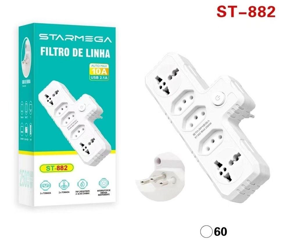 STARMEGA - FILTRO DE LINHA / EXTENSAO 5 TOMADAS USB 2.1A - ST-882