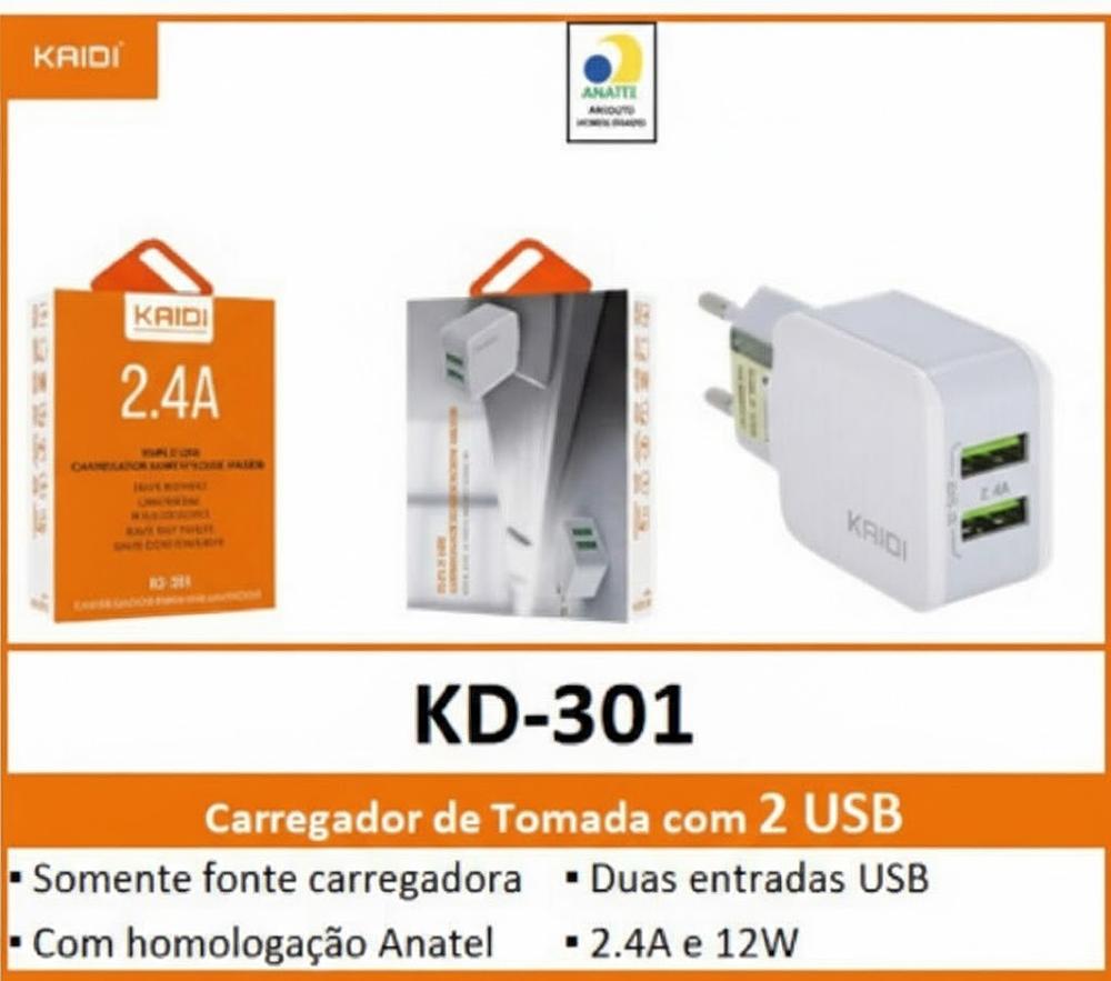 KAIDI - FONTE 2 ENTRADAS USB 12W 2.4A