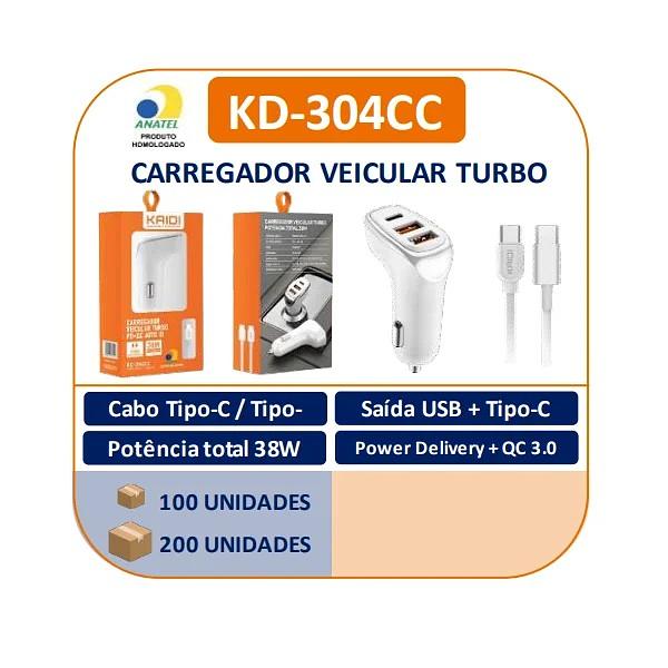 KAIDI - CARREGADOR VEICULAR + CABO TC / TC - KD-304CC