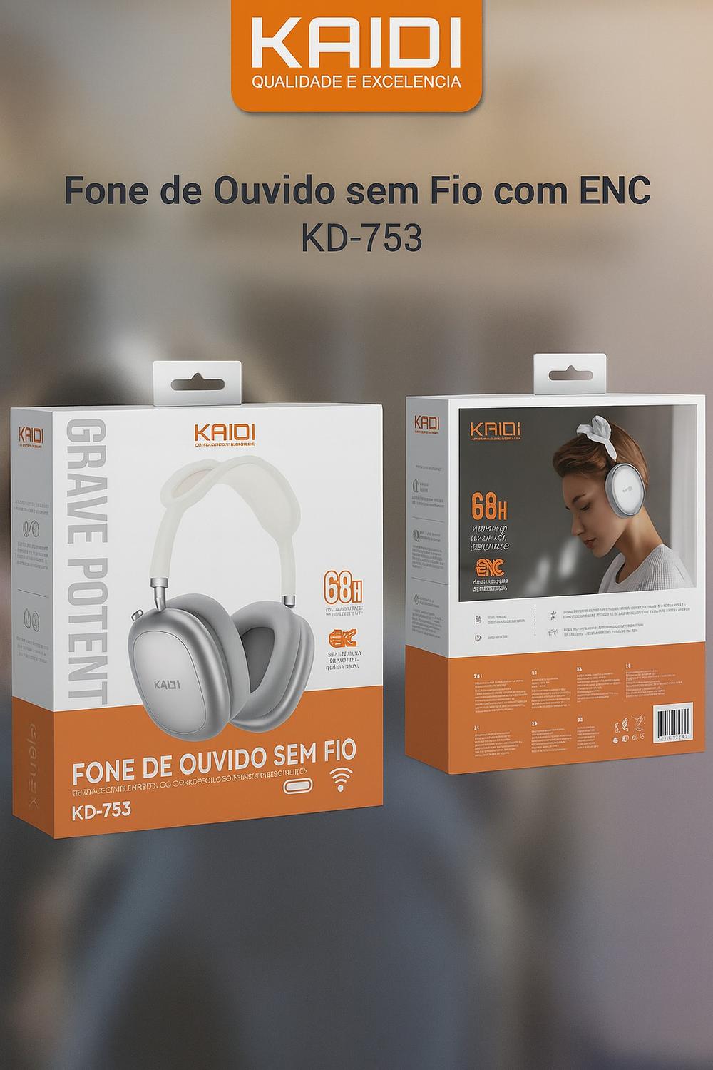 KAIDI - FONE SEM FIO BLUETOOTH COM ENC