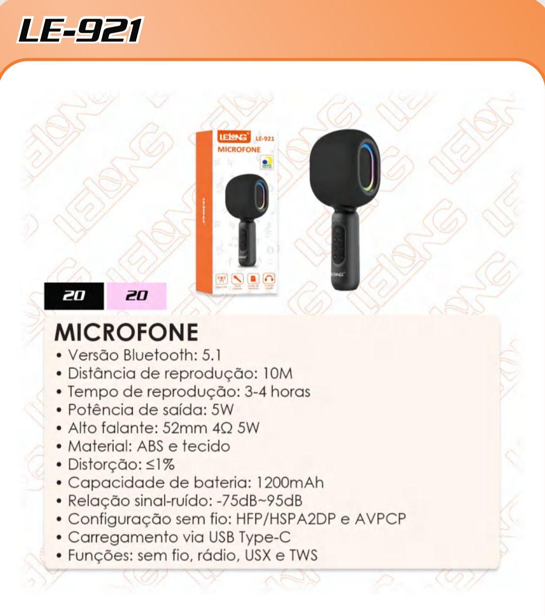 LELONG - MICROFONE SEM FIO COM ALTO FALANTE E RADIO - LE-921