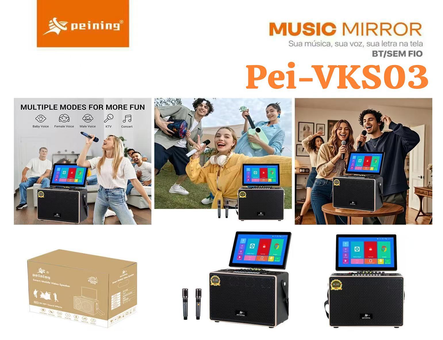 PEINING - CAIXA DE SOM COM 2 MICROFONE E TELA PARA KARAOKE - PRI-KVS03