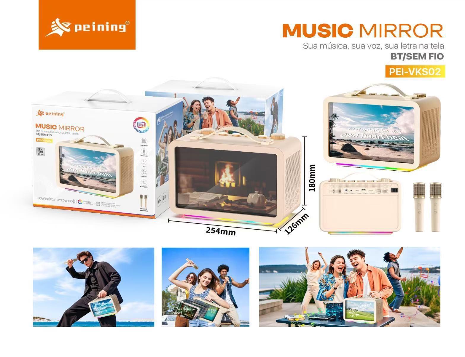PEINING - CAIXA DE SOM COM 2 MICROFONE E TELA PARA KARAOKE - PEI-KVS02