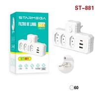 STARMEGA - FILTRO DE LINHA / EXTENSAO 3 TOMADAS 3 USB 2.1A - ST-881